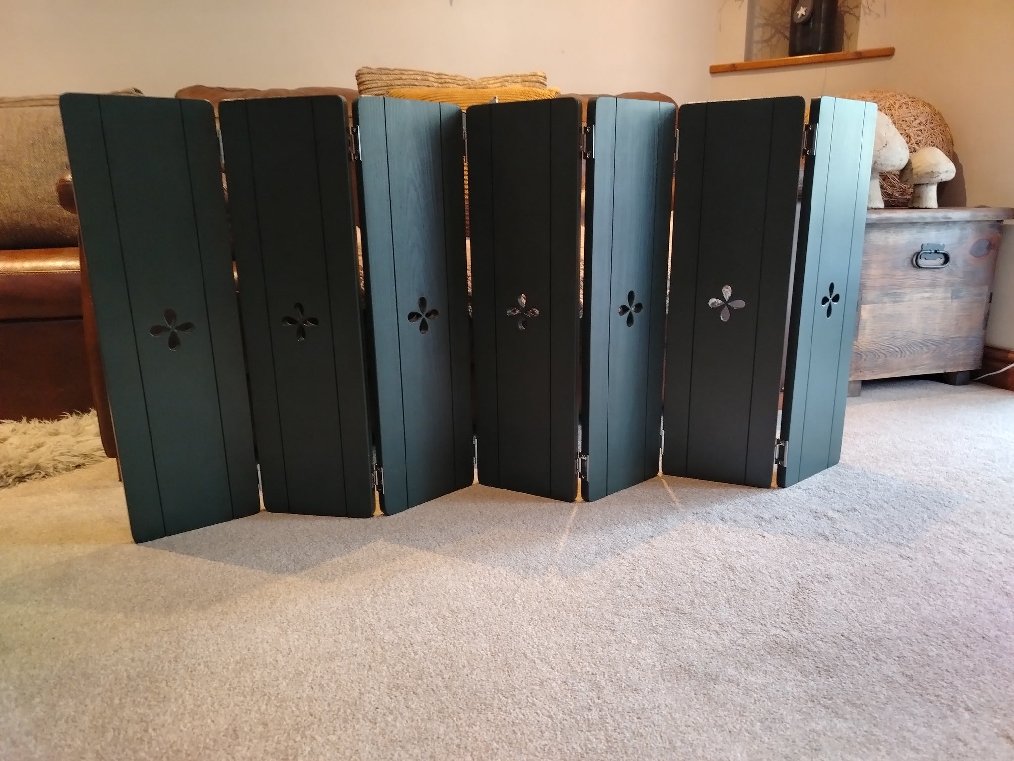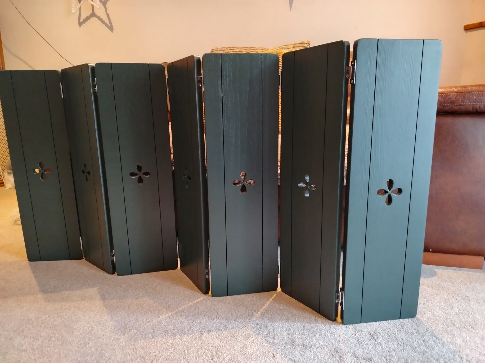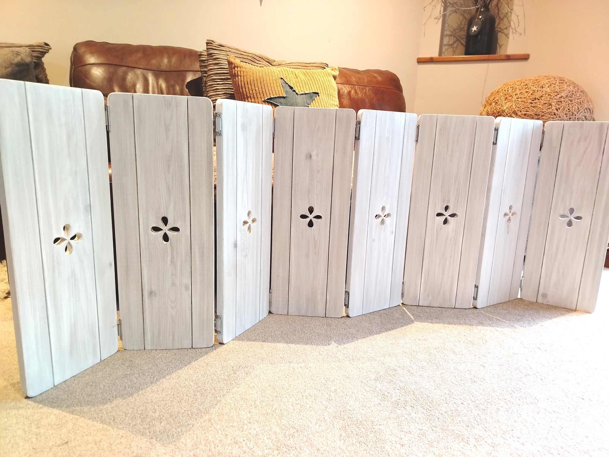 They can have either a Heart, star or petal design cut out in the centre of each panel and can be finished in Dark Oak our Signature Rustic White, Ivory, Dark Green